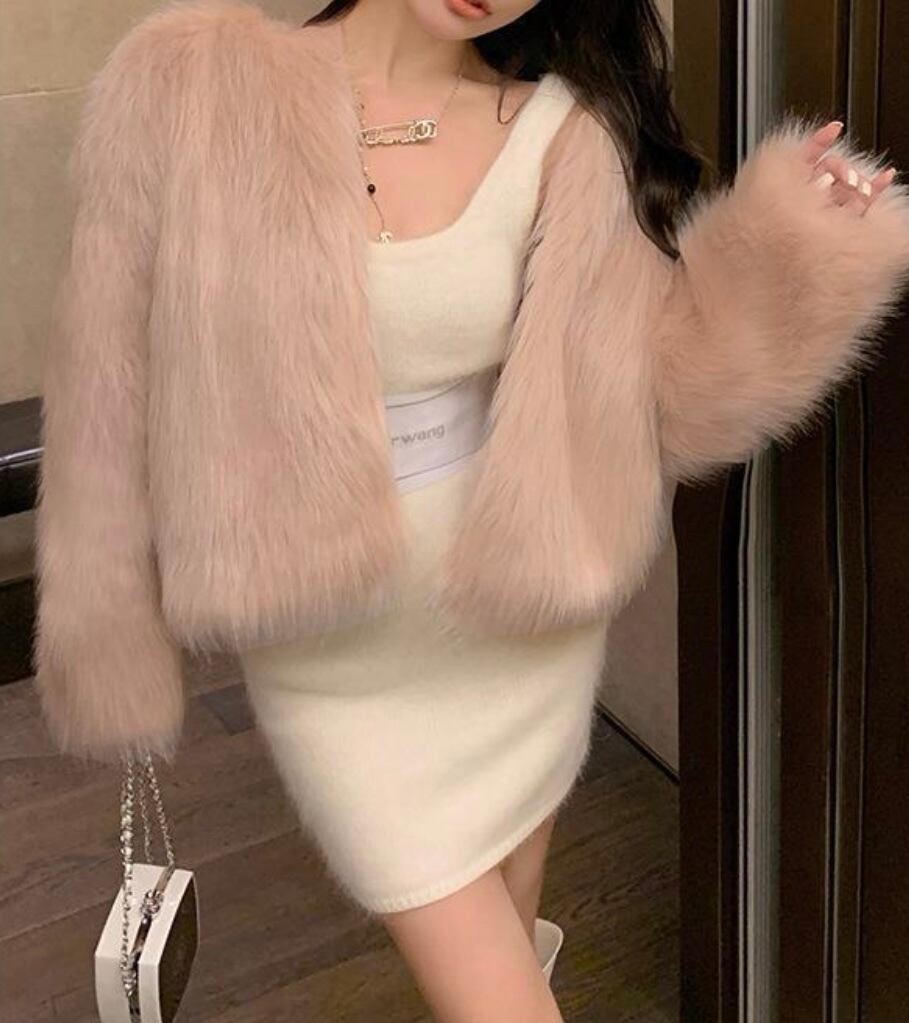〝ドレスを綺麗に魅せるエレガントなファーコート〟